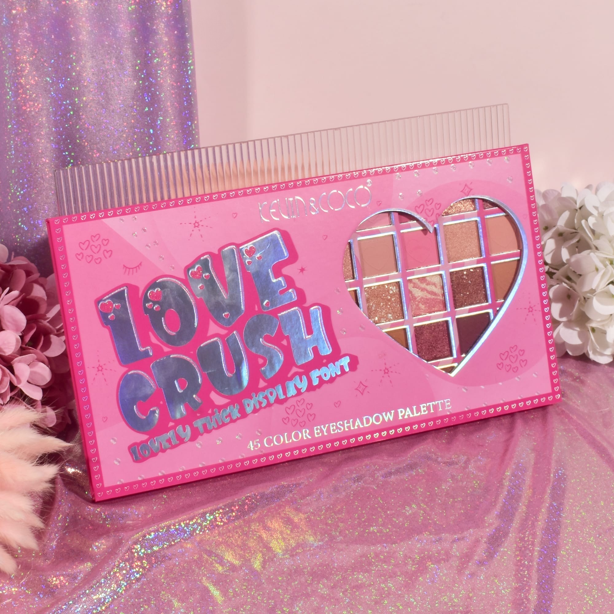Palete de Machiaj, KEVIN & COCO, Love Crush, Fard de Pleoape, 45 culori, 30.3 x 16.5 cm