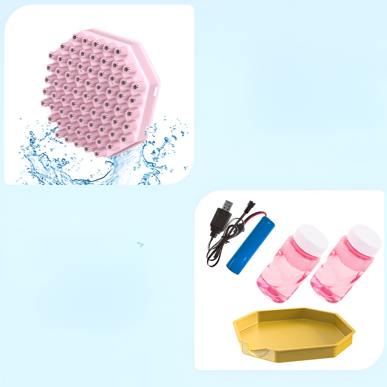 Pistolul pentru baloane de săpun poate pulveriza peste 7000 de baloane colorate care zboară către cer în fiecare minut. Când apăsați pe trăgaci, vor fi lansate baloane, iar țeava se aprinde.