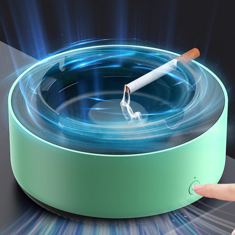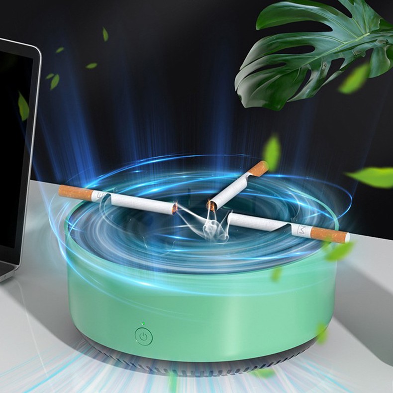Scrumiera Multifunctionala cu Absorbtie, Flippy, Incarcare USB, cu Purificator de Aer, Scrumiera cu Absorbtie Fum, 14,5 x 14 x 7,5 cm, Verde