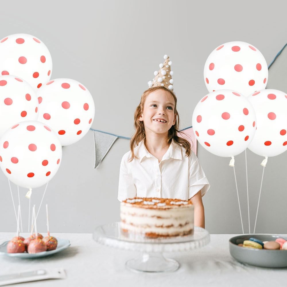 Set 10 Baloane din Latex, Flippy, Model Party cu Buline, 30 cm, Alb si Rosu, 2.8 g