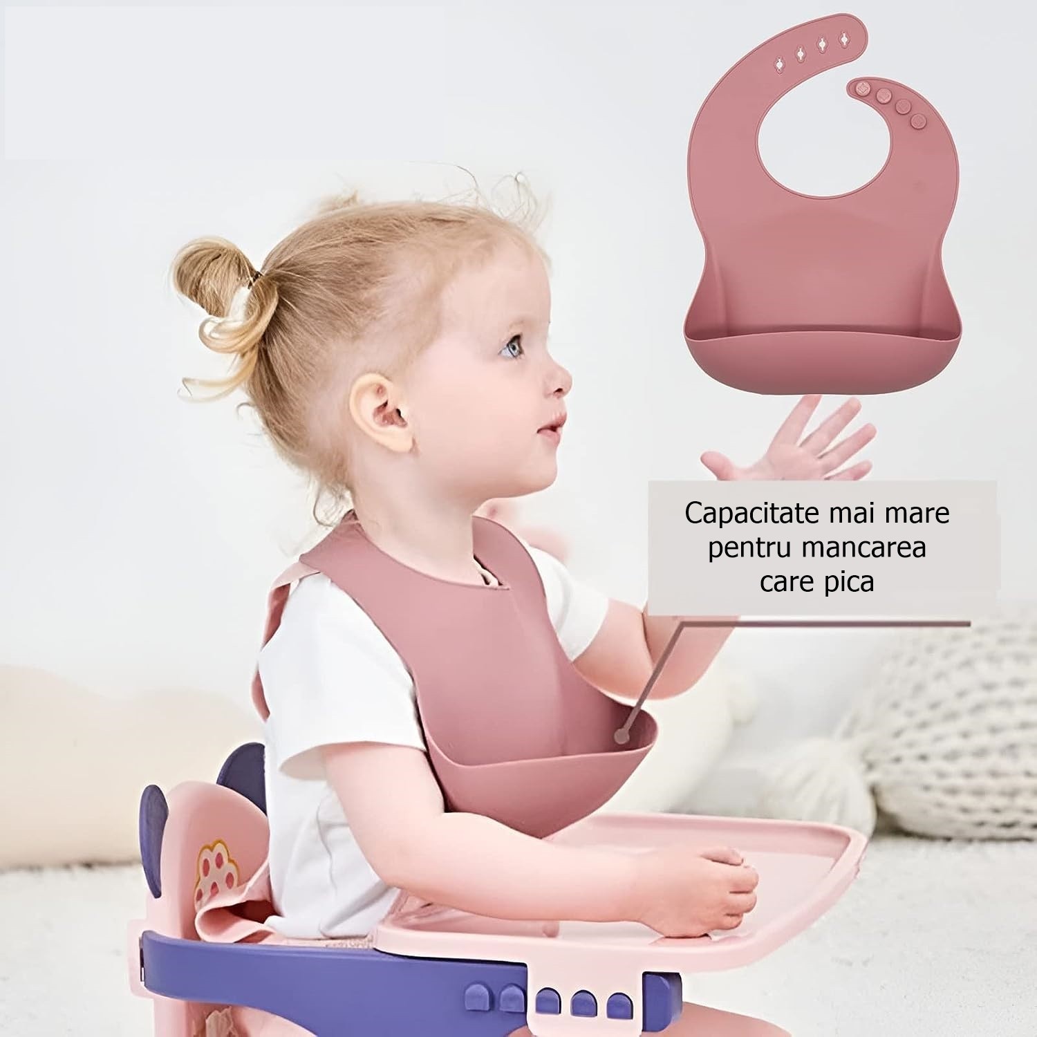 - Estetică atrăgătoare: Setul Flippy vine într-o nuanță delicată de roz pudrat, care este apreciată de către cei mici și care poate stimula interesul pentru mâncare. Designul atrăgător, cu componente jucăușe și prietenoase, poate face ca procesul de a mânca să devină o experiență distractivă și plăcută pentru copii, contribuind la crearea unui mediu pozitiv în jurul mesei.