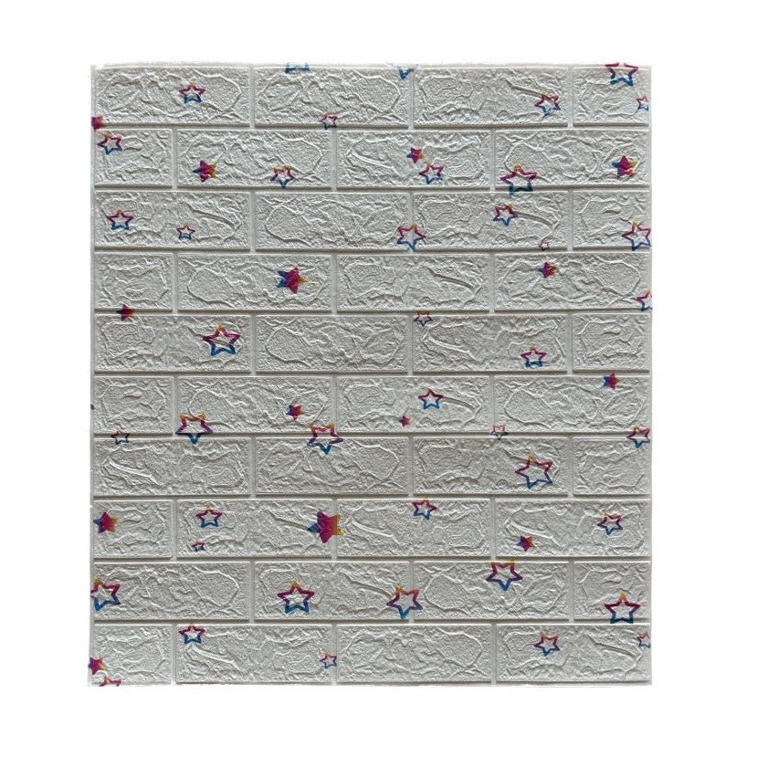 Design 3D realist: Textură de cărămidă cu imprimeu stelute curcubeu, aducând un aer modern și elegant oricărui spațiu.