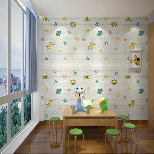 Descriere Produs: Set 10 Placi Tapet 3D – Tip Caramida, Model Animalute si Floricele, Flippy