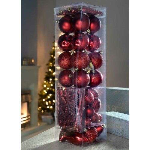 Set 11 globulete rosu si argintiu diverse forme si margele de 2.7m – glitter, mat, shiny – 5cm