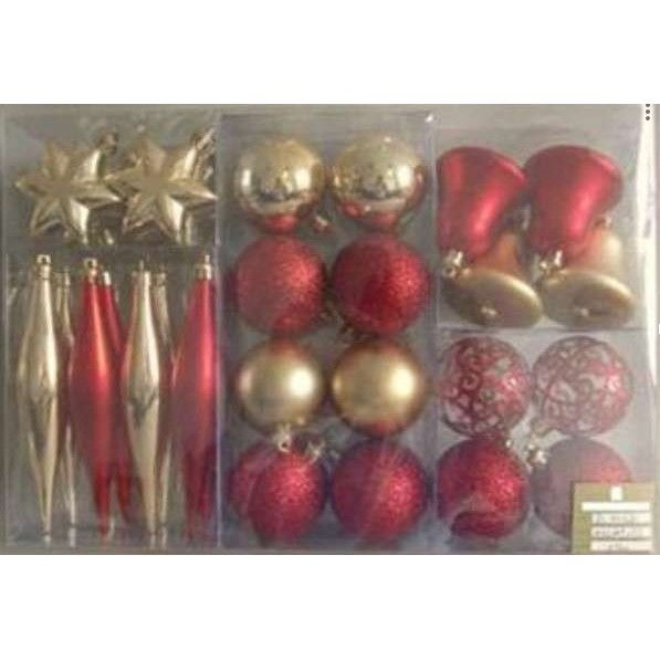 Set 45 globulete rosu si argintiu diverse forme si sloi de gheata 1m – glitter, mat, shiny – 5cm