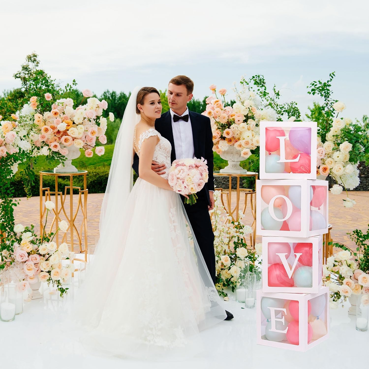 Set 4 Cutii pentru Baloane Love, Contur Alb – Eleganță È™i FuncÈ›ionalitate pentru Momentele Speciale!