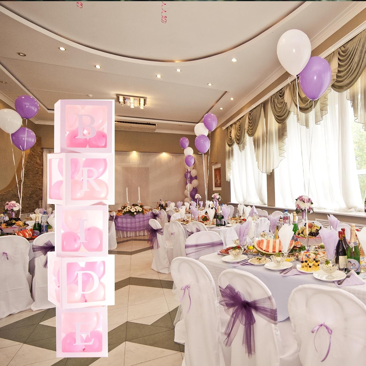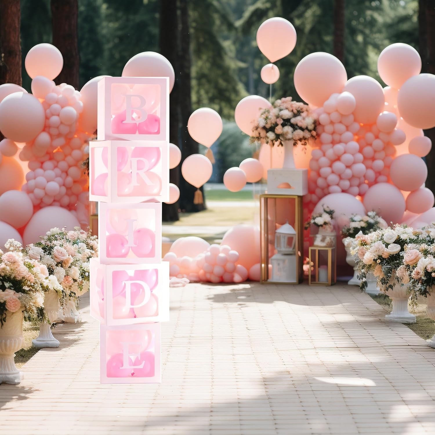 Set 5 Cutii pentru Baloane – Scris Bride, Contur Alb- 30×30 cm