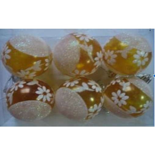 Set 6 globulete galben cu flori alb – glitter