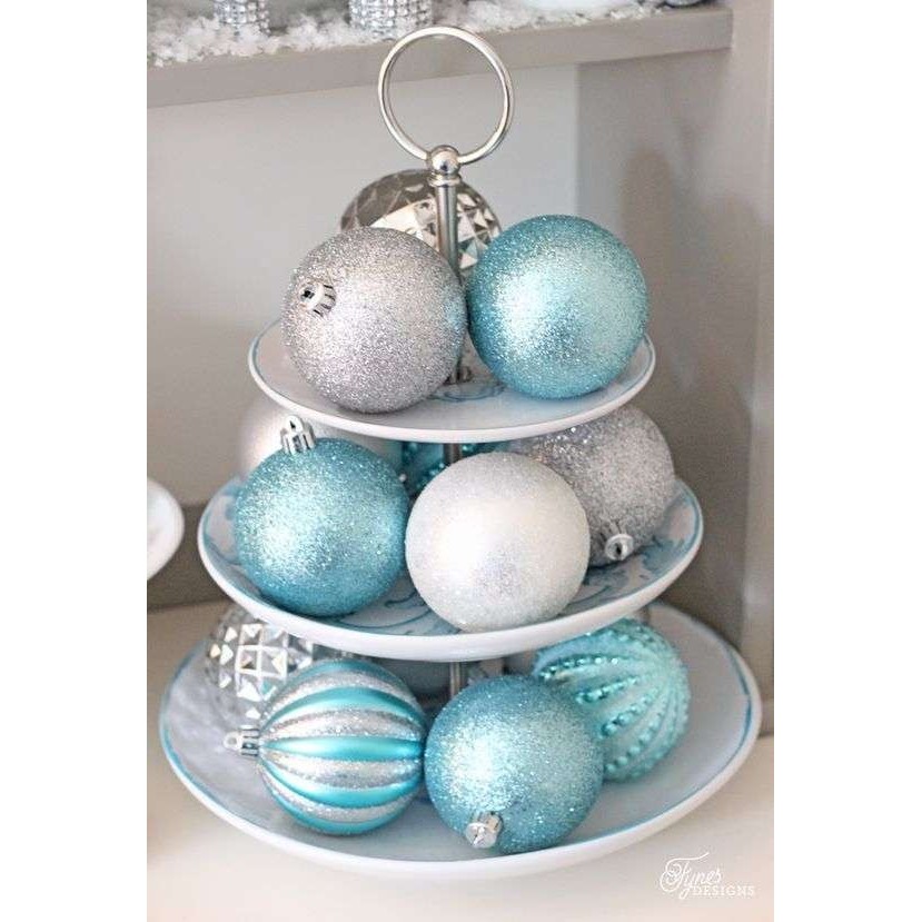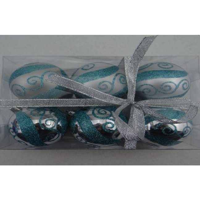 Set 6 globulete turcoaz cu argintiu – shiny, glitter – 6cm
