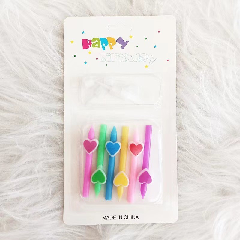 Set de 6 Lumânări cu Inimioare Flippy Multicolore – Happy Birthday