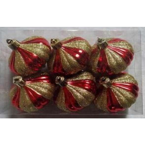 Set 6 ornamente rosu cu auriu – shiny, glitter – 6.5cm