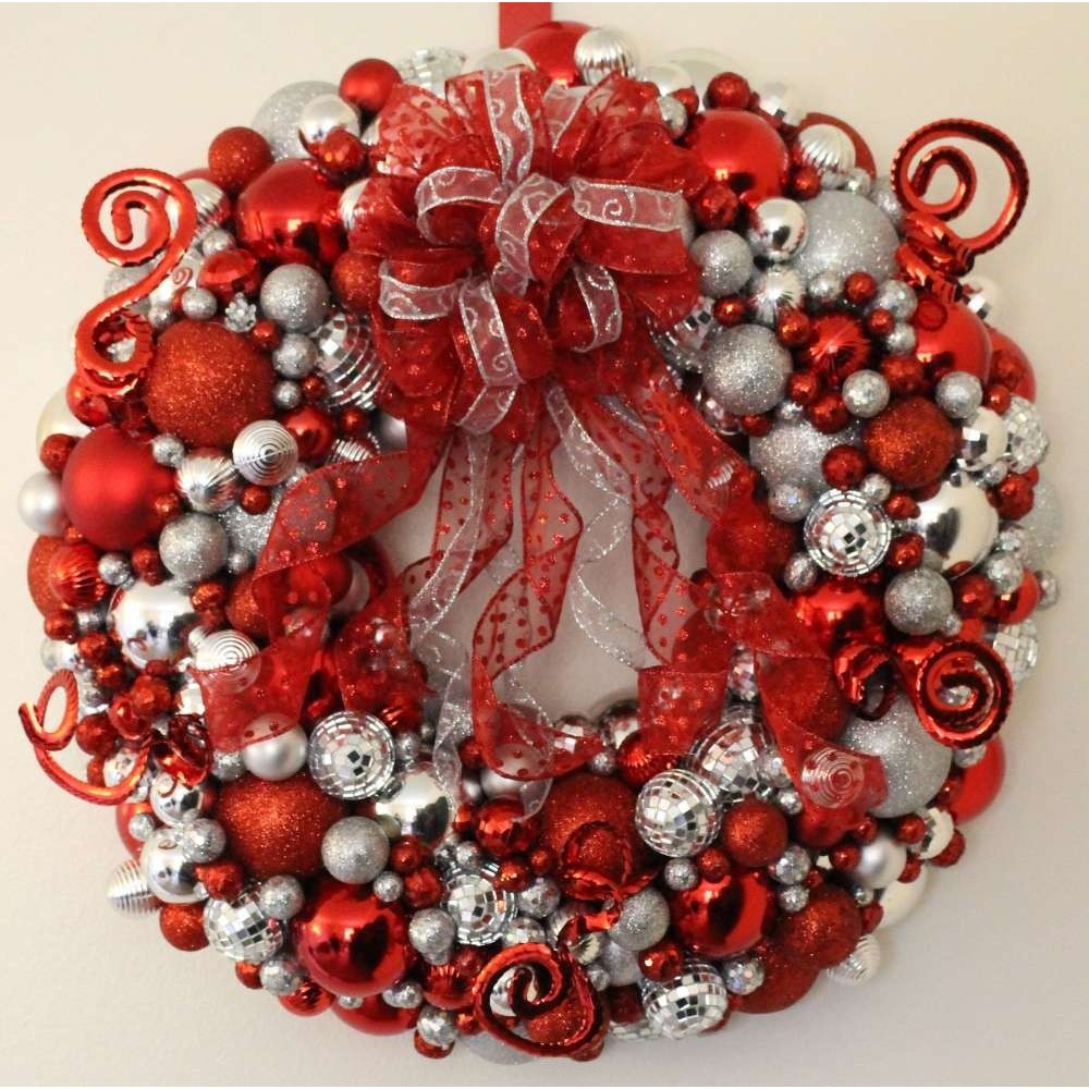Set 63 globulete rosu cu argintiu diverse forme si margele de 2.7m – glitter, mat, shiny