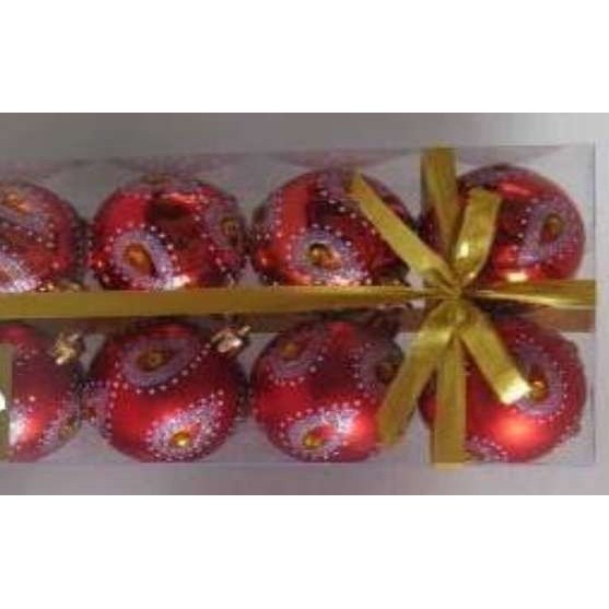 Set 4 globulete rosu cu alb – shiny copper – 6cm