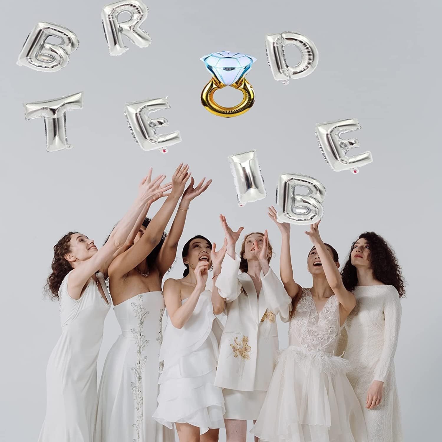 Set Baloane din Folie Metalizata, Flippy, Model Bride to Be cu Inel de Logodna, Litere de 40 cm, Baloane Party, Ambalaj Individual, Pai Inclus, Umflare cu Aer sau Heliu, Argintiu