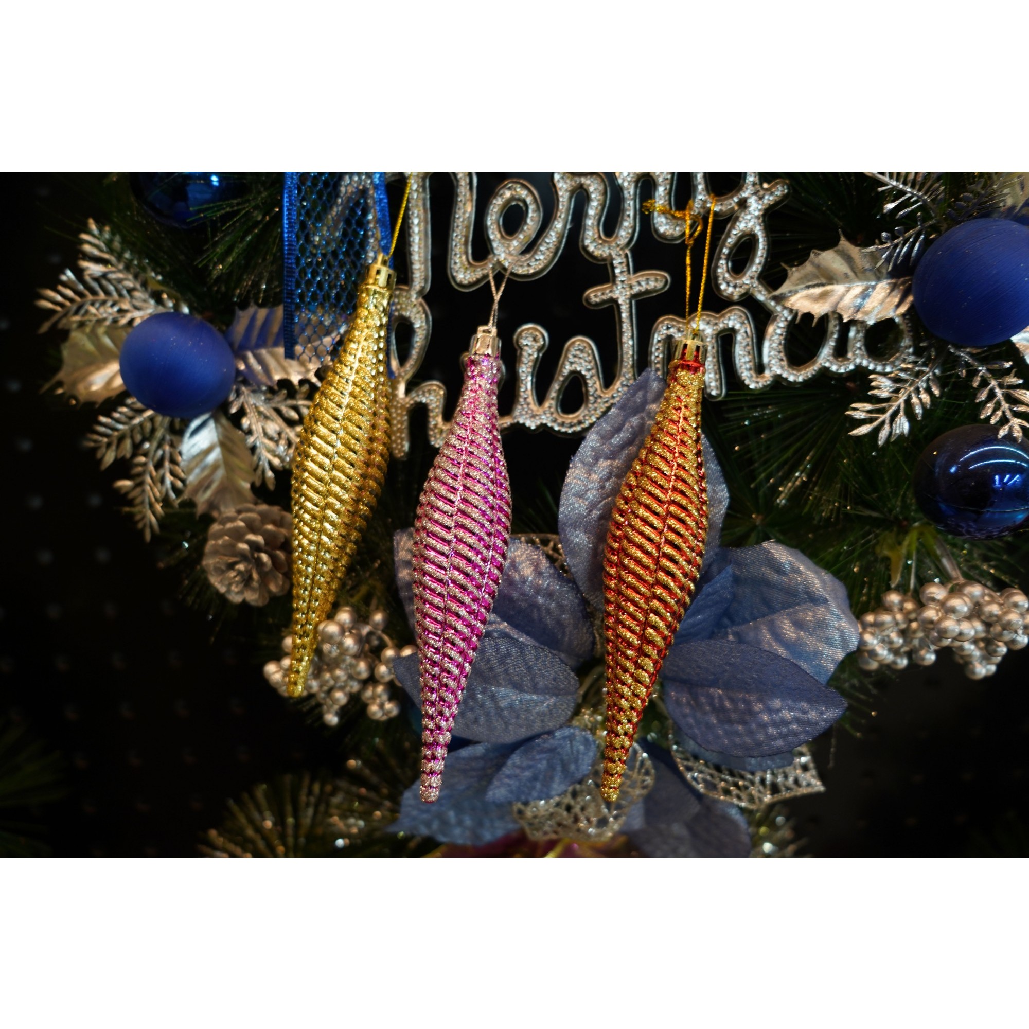 Set de 6 ornamente de brad, Flippy, de tip Asimetric, Multicolor, cu ø de 3.5 cm, din plastic, cu finisaj sclipitor , cutie 16 cm inaltime x 9.5 cm lungime x 7 cm adancime