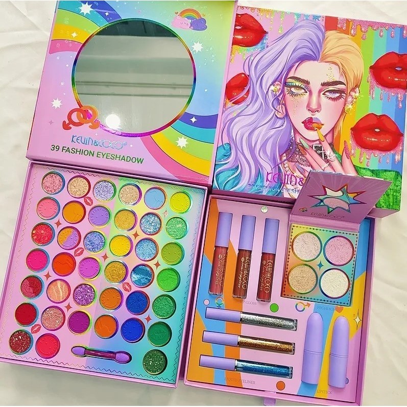 Descoperă setul de machiaj Kevin & Coco cu 39 de culori vibrante și produse esențiale pentru un look complet. Perfect pentru toate tipurile de ten, acest set include farduri de ochi diverse, ruj, gloss, tuș și fard de obraz, toate într-un ambalaj atrăgător și practic.