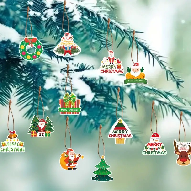 Set Decorațiuni de Crăciun pentru Brad, Flippy, Modele Variate, Sfoară Inclusă, 12 Piese, 5.5 x 6.5 cm, Model A, Multicolor