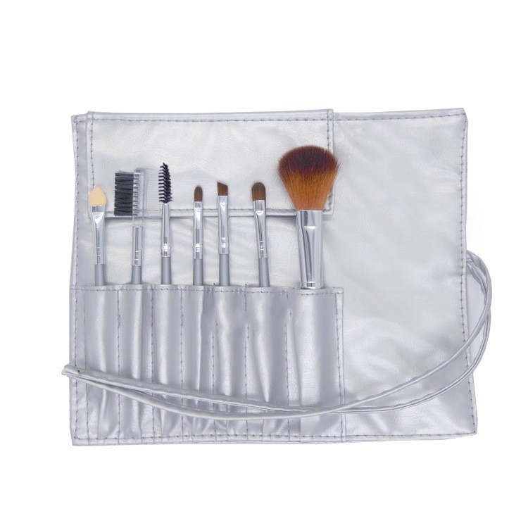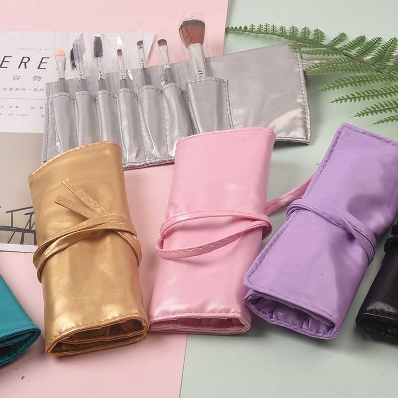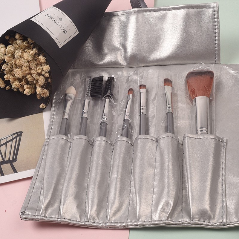 Set 5 Pensule de Machiaj cu Peri Moi, Flippy, cu Suport pentru Depozitare si Oglinda, Roz Inchis