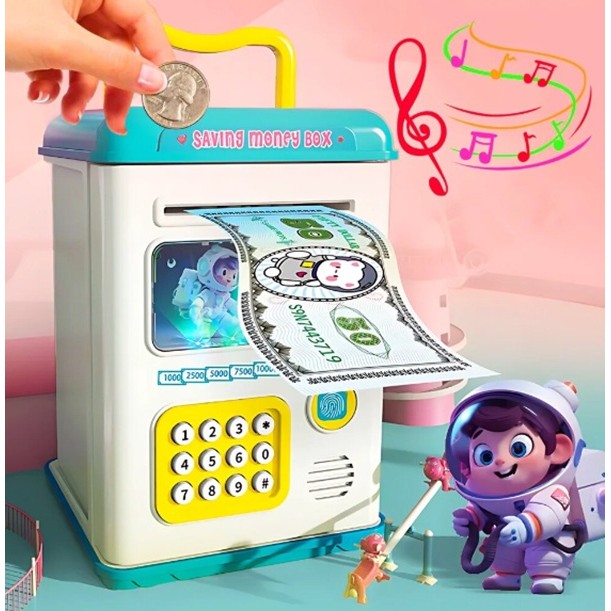 Transformă economisirea banilor într-o activitate distractivă și educativă pentru cei mici cu pusculița interactivă Flippy, în formă de bancomat (ATM). Dotată cu parolă de securitate, senzor de amprentă și funcție automată de tragere a bancnotelor, această mini-bancă personală este ideală pentru învățarea valorii banilor, dezvoltarea responsabilității și oferirea unui spațiu sigur de depozitare pentru economii.