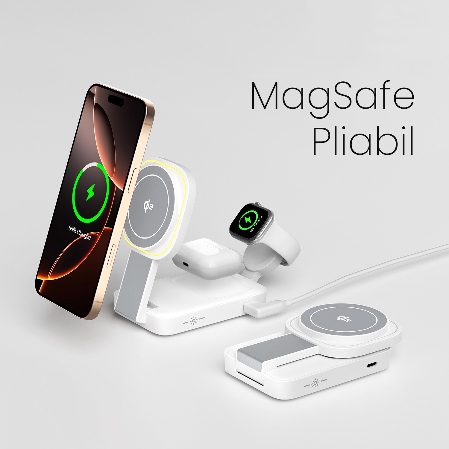 Thank you for reading this post, don't forget to subscribe!Incarcatorul Wireless 3 in 1 Mag Safe Fast Charger, Flippy este solutia ideala pentru incarcarea simultana a dispozitivelor tale Apple. Designul modern si compact permite alimentarea rapidă a unui iPhone, a unui Apple Watch si a castilor AirPods, toate in acelasi loc. Suportul rabatabil ofera stabilitate si permite pozitionarea telefonului in unghi optim pentru vizualizare.