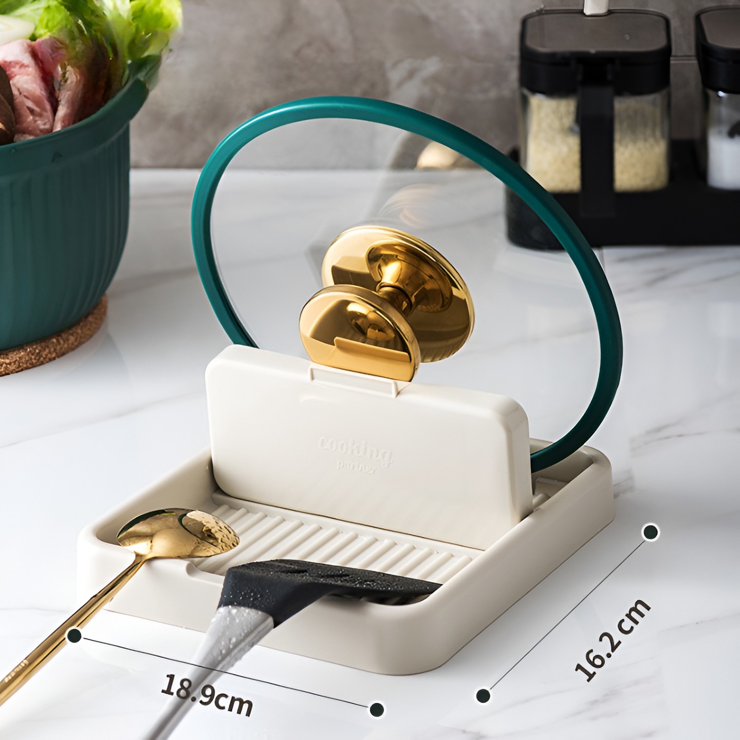 Suport Pliabil, Flippy, pentru Capace, Linguri, Multifunctional, Plasare pe Blatul de Bucatarie, 18.9×16.2×2.6 cm, Crem
