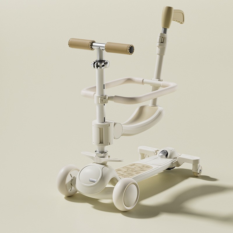 Scăunelul este și el detașabil, astfel încât dupa vârsta de 3 ani produsul se transformă în trotinetă.