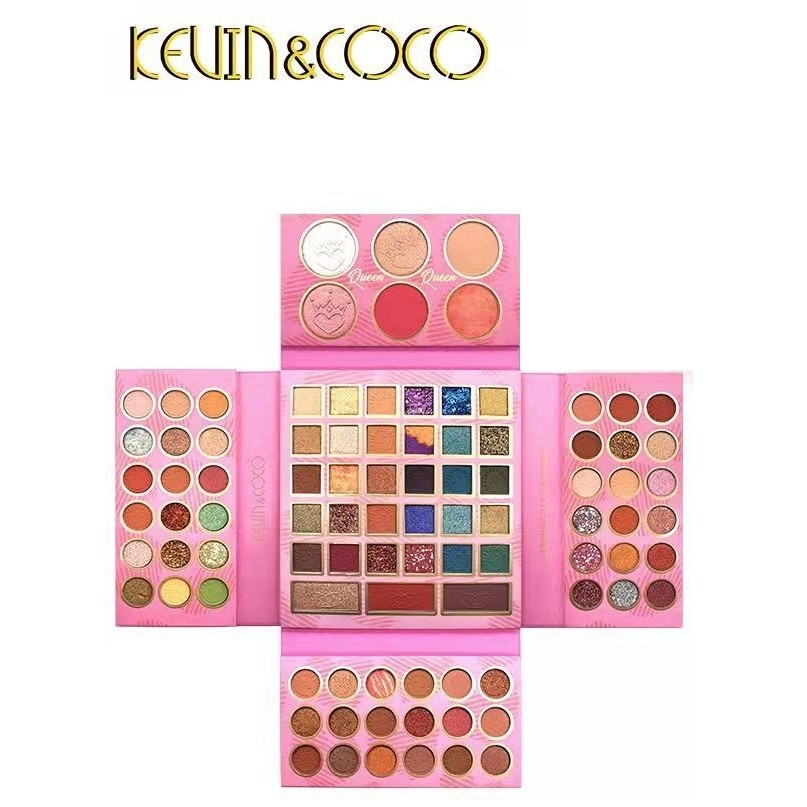 Trusa de machiaj, paleta de farduri , iluminator si blush Kevin&Coco cu 93 de culori pigmentate, Flippy