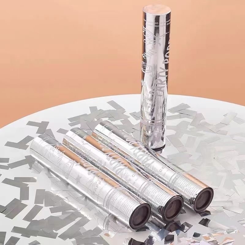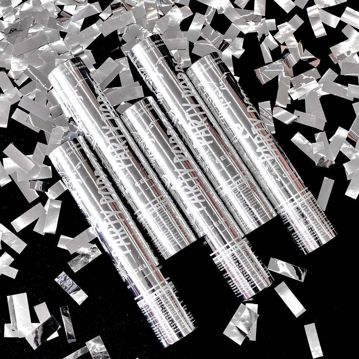 Tub de Confetti, Flippy, Party Popper, 30×5 cm, Confetti Lucioase Rezistente la Foc, Argintiu, Eliberare prin Răsucire