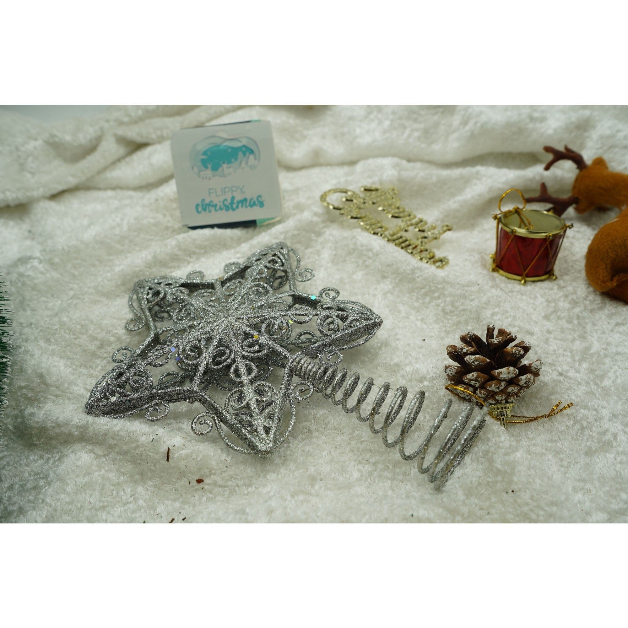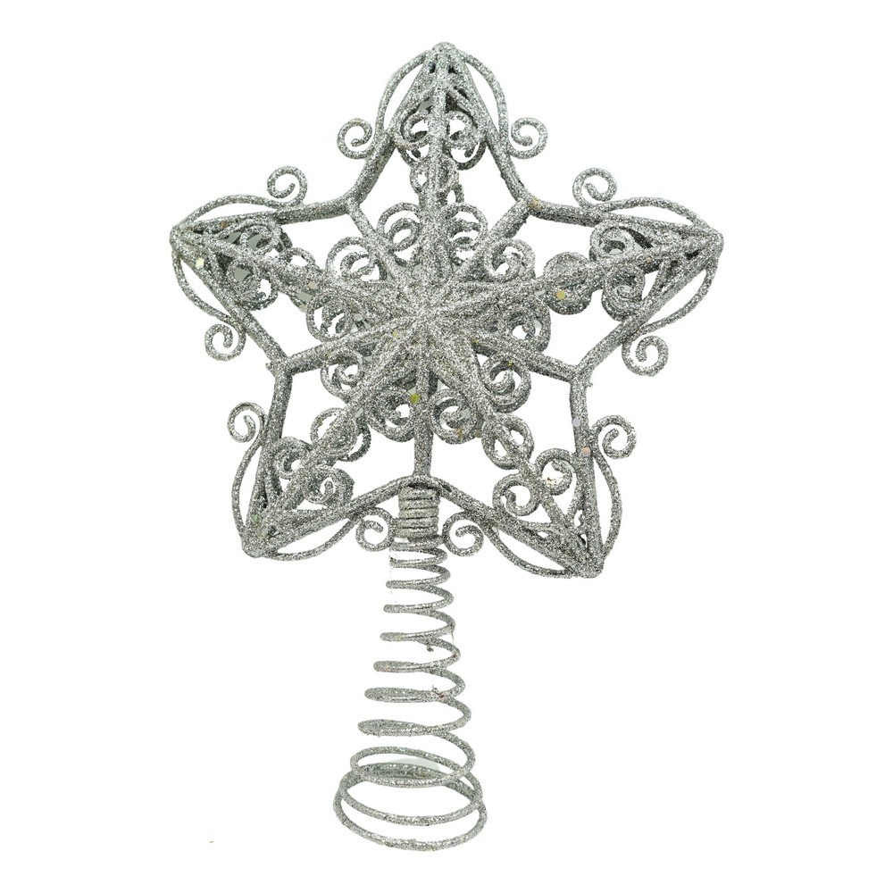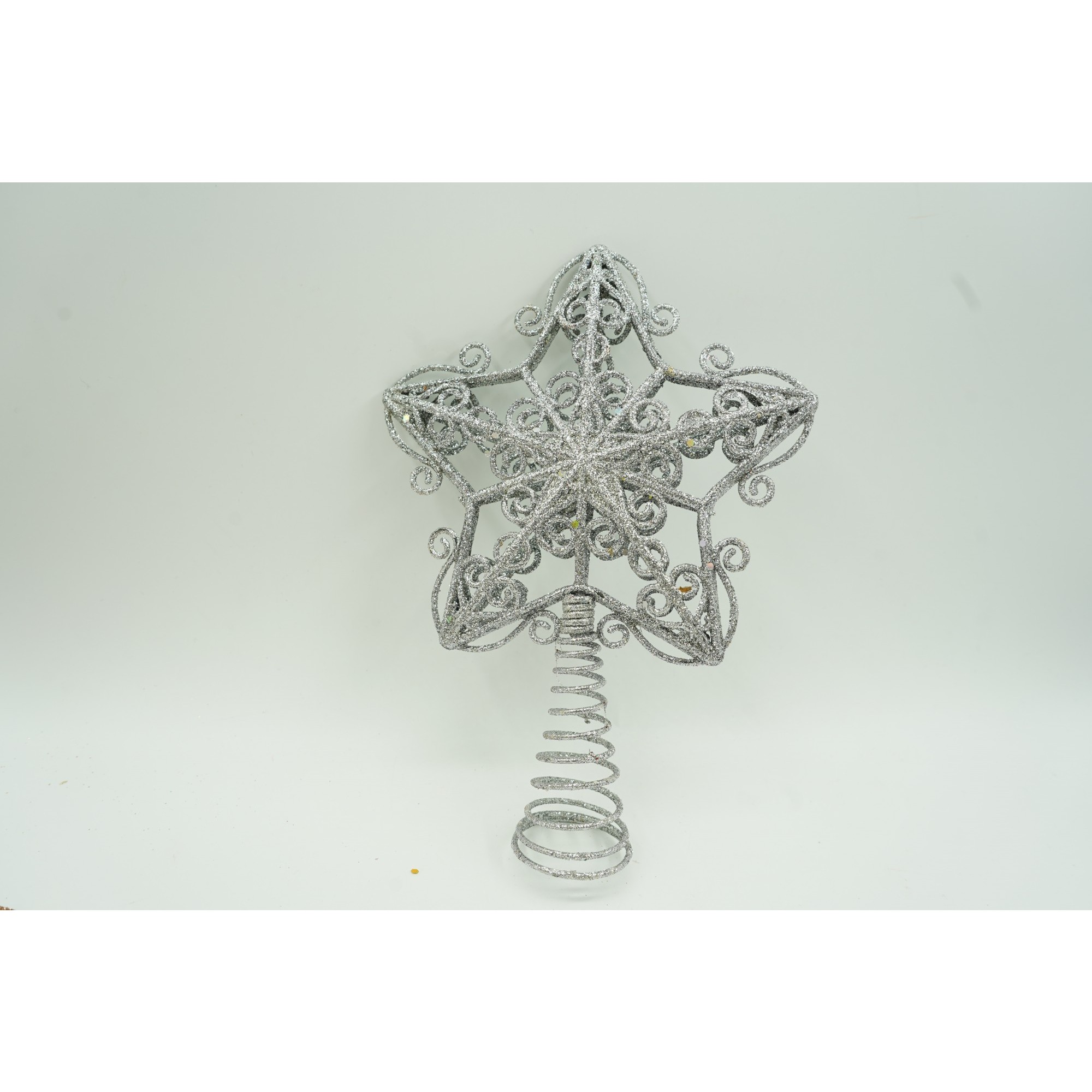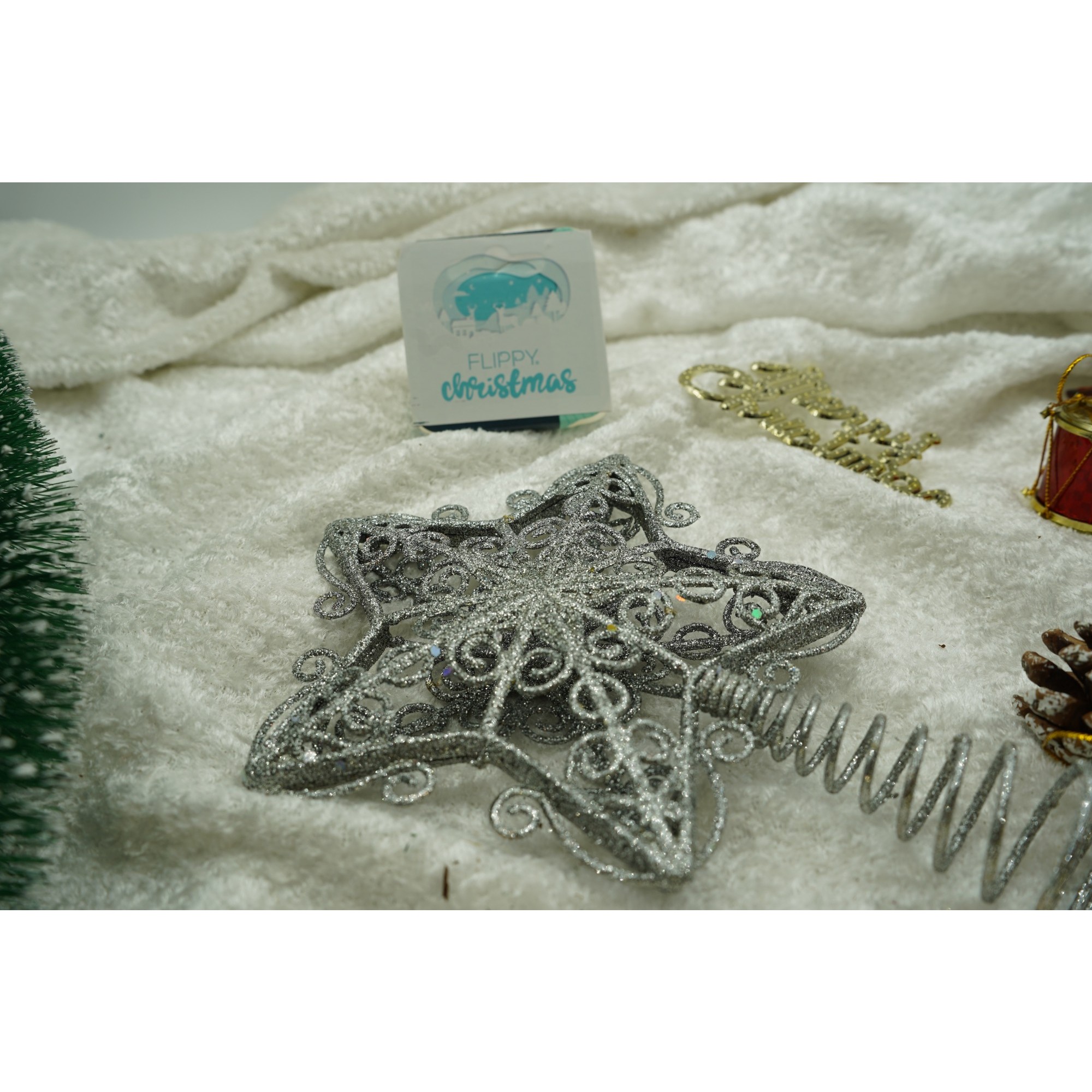 Varf decorativ de brad, Argintiu, in forma de Stea, design forjat, din Plastic/Metal, 14.5 cm x 20 cm, Interior/Exterior, Flippy
