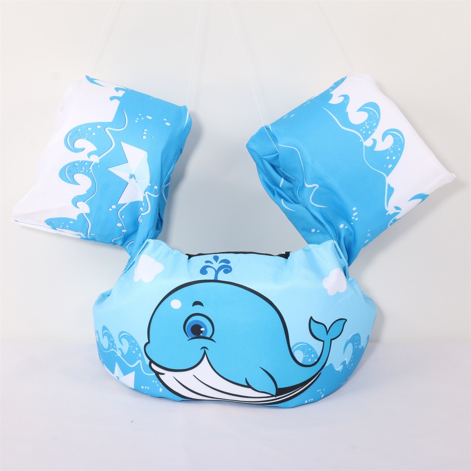 Vesta de salvare pentru copii cu aripioare de inot, Flippy, Albastru, Model balena